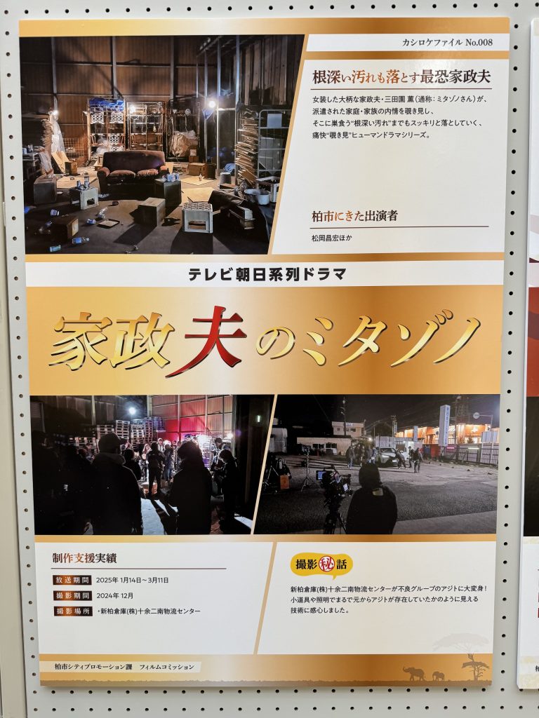 柏市内での撮影場所などの支援を行っている柏市フィルムコミッション様が令和7年度柏市ロケ展示を開催されております。